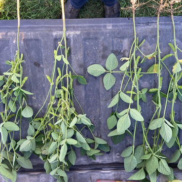 We broadcasted soybeans at 60 lbs/acre with the drone directly into standing wheat—three weeks earlier than conventional planting. Both fields were side by side and grown under the same conditions for an accurate comparison.